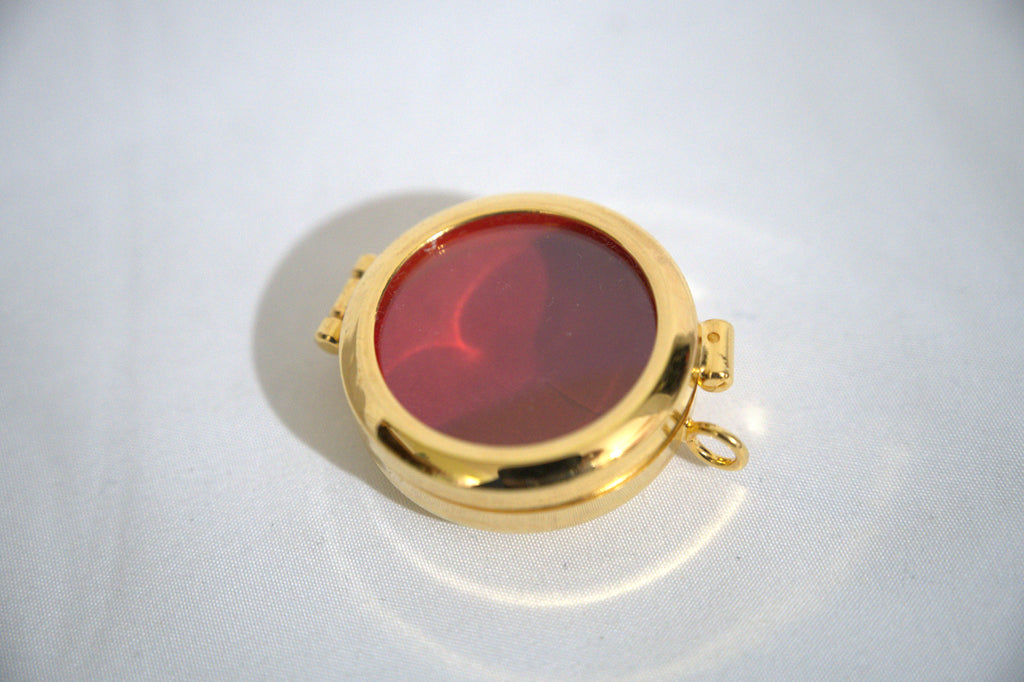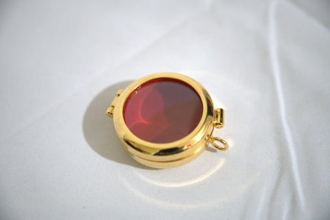 Gold plated pyx. The case measures 4 cm in diameter and 1.5 cm in height.