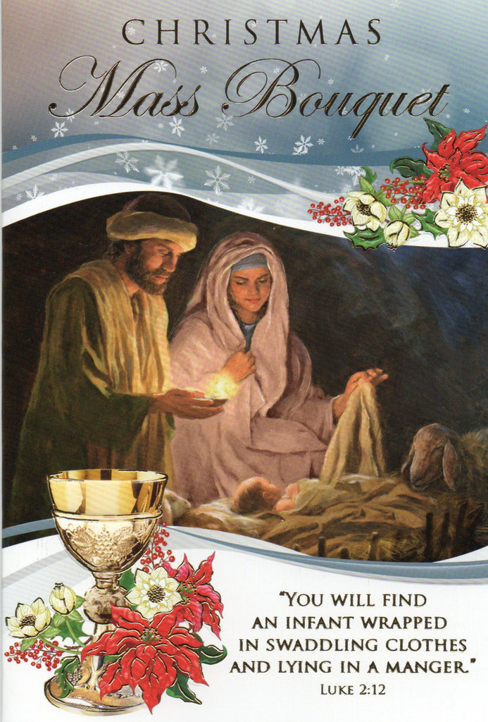 Inside words read: The Holy Sacrifice of the Mass will be offered for you at Christmas. Wishing you peace and happiness at Christmas and the New Year.  From........ Rev:............