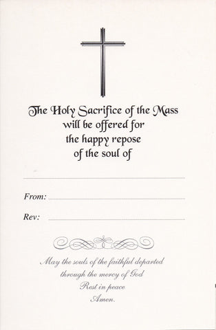 The Holy sacrifice of the mass will be offered for the happy repose of the soul of…